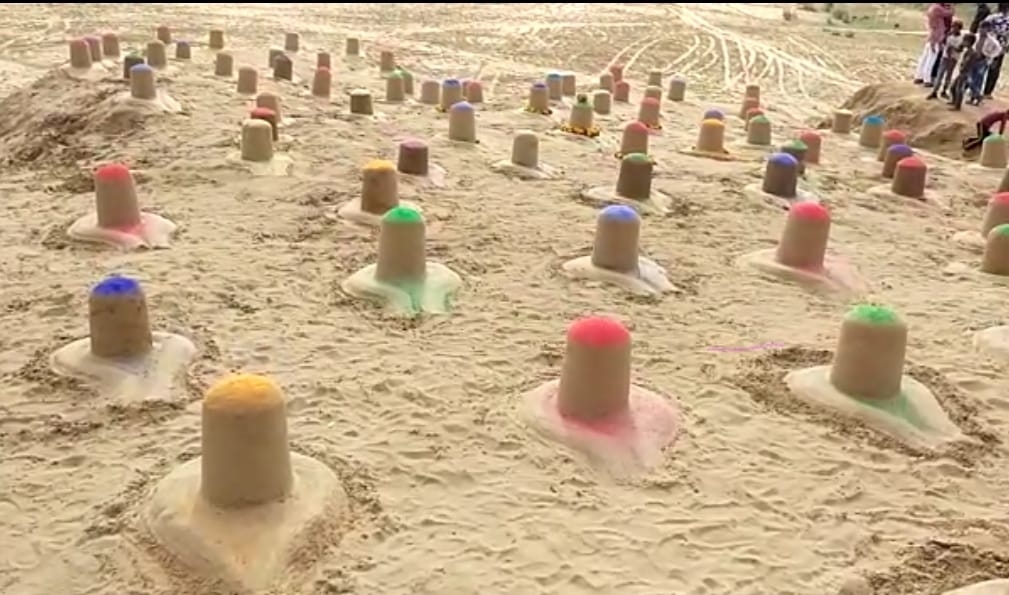 This is the holy month of Shravan, a devotee of Lord Shiva (Hindu God) has expressed his devotion quite differently on the religious land of Pushkar in Rajasthan by making 108 colored Shiva lingams.