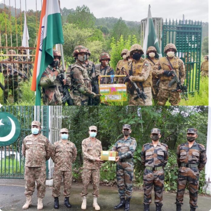 On the occasion of Eid-al-, India and Pakistan armies held a flag meeting and exchanged sweets at the Line of Control (LOC) in Jammu and Kashmir on Wednesday 21st July.